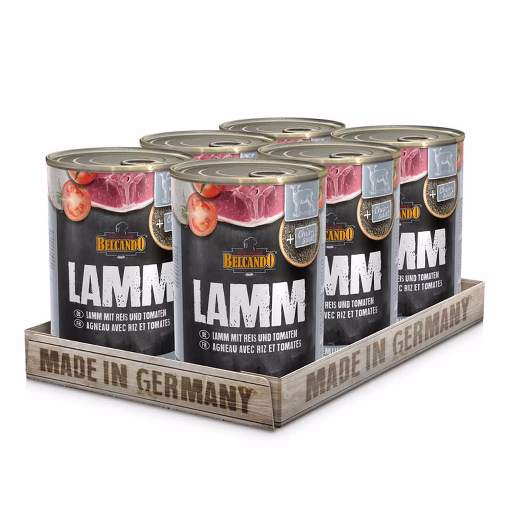 Belcando Lamm mit Reis ist ein hochwertiges Premiumdosenfutter für Hunde. Das Dosenfutter enthält ausgewählte Zutaten aus vertrauenswürdigen Quellen, die das Futter so schmackhaft machen.