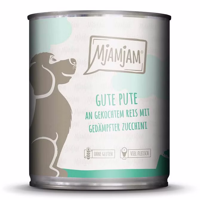 MJAMJAM gute Pute an gekochtem Reis mit gedämpfter Zucchini für Hunde 800g