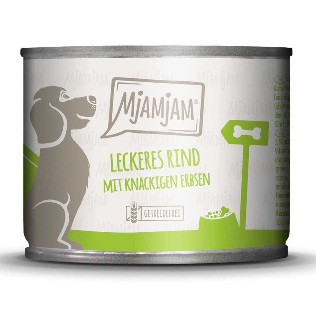MJAMJAM leckeres Rind an gekochten Kartoffeln mit knackigen Erbsen für Hunde 200g