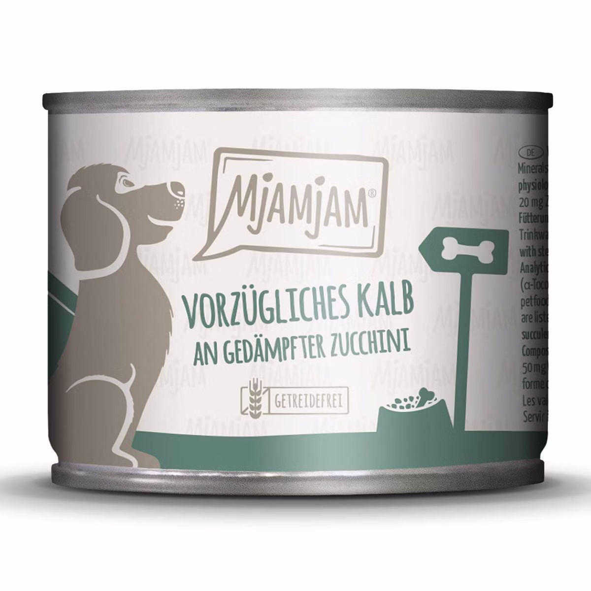 - Mjamjam Vorzügliches Kalb an gedämpfter Zucchini - ist ein naturbelassenes Hundefutter