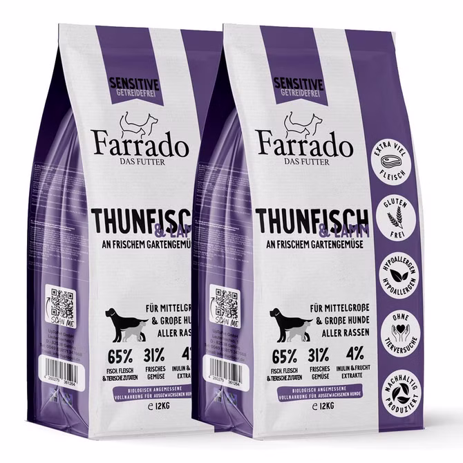 Farrado Lamm und Thunfisch large breed für Hunde 2x12kg