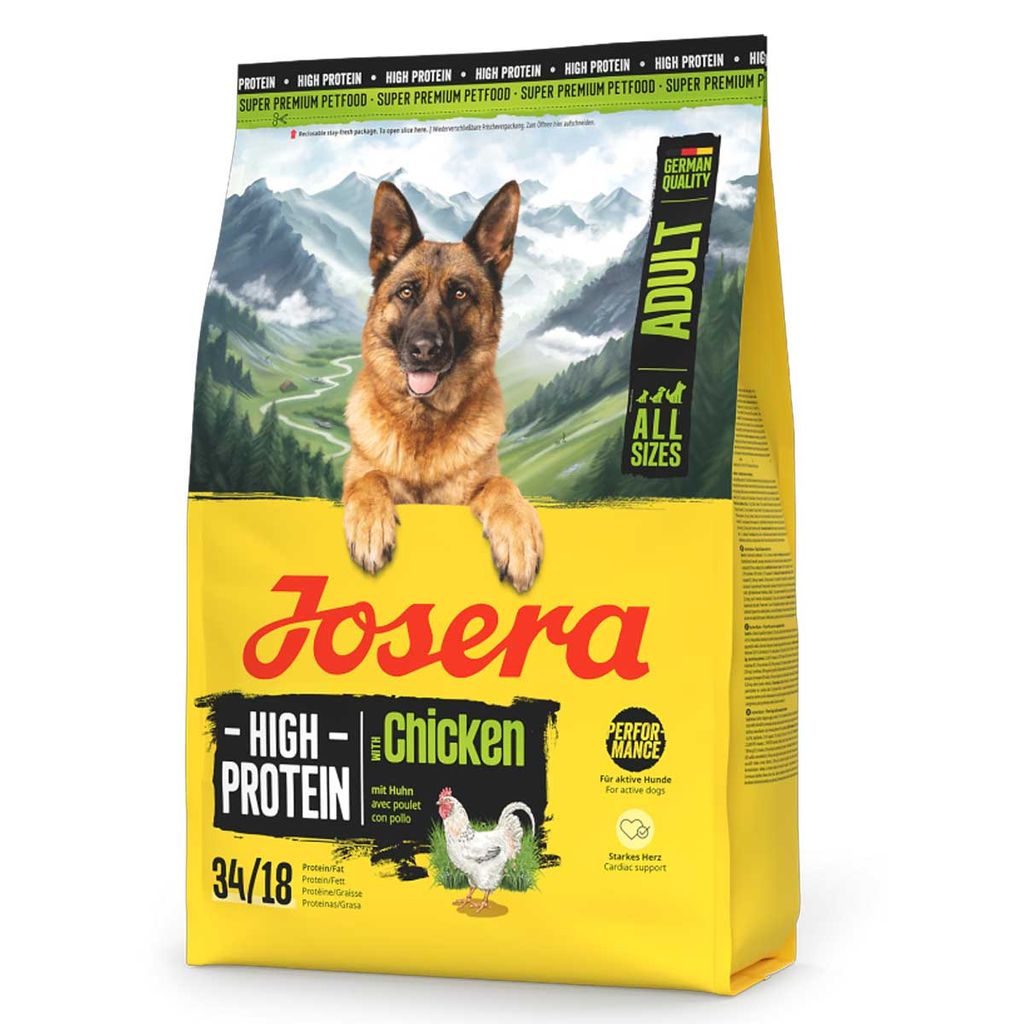 Wenn Sie einen Hund haben, der einen erhöhten Energiebedarf hat, sind Sie mit Josera High Protein Adult Chicken optimal beraten. Es ist proteinreich, energiereich, gut verträglich und schmackhaft. Das glutenfreie Hundefutter wurde speziell für sehr aktive Vierbeiner konzipiert und bringt einen hohen Anteil an wertvollen Proteinen mit. Es ist ideal für alle, die im Hundesport aktiv sind oder als Arbeits- oder Zuchthunde eingesetzt werden und tagtäglich hohe Leistung erbringen.
