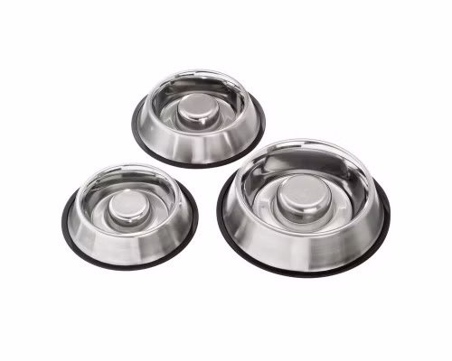 Antirutsch-Napf mit einer Erhöhung in der Mitte damit der Hund länger braucht, um das Futter zu fassen, somit wird dem schlingen vorgebeugt