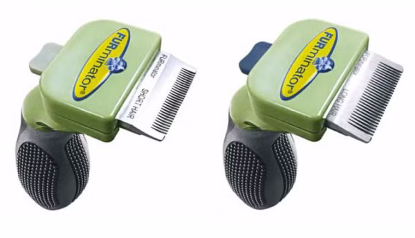 Der Furminator hat einen Druckknopf (FURejector) zum schnellen Entfernen loser Haare aus der Pflegekante.