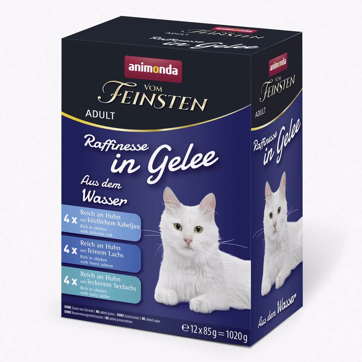 Animonda vom Feinsten Raffinesse in Gelee Varietäten aus dem Wasser werden für den anspruchsvollen Katzengaumen hergestellt und bieten eine ausgewogene und gesunde Ernährung.