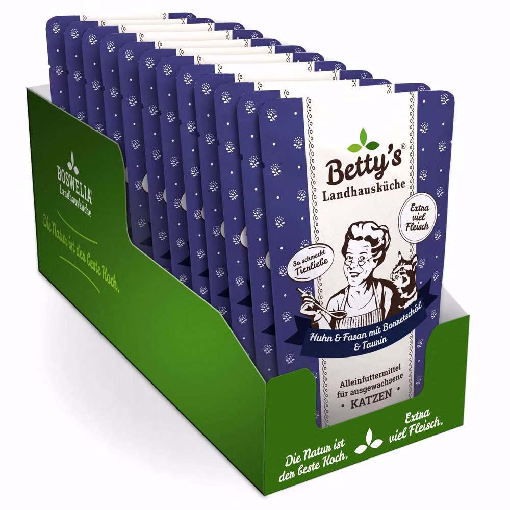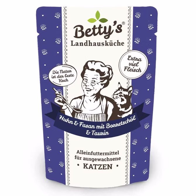 Bettys Landhausküche Huhn Fasan mit Borretschöl Pouch für Katzen 100g
