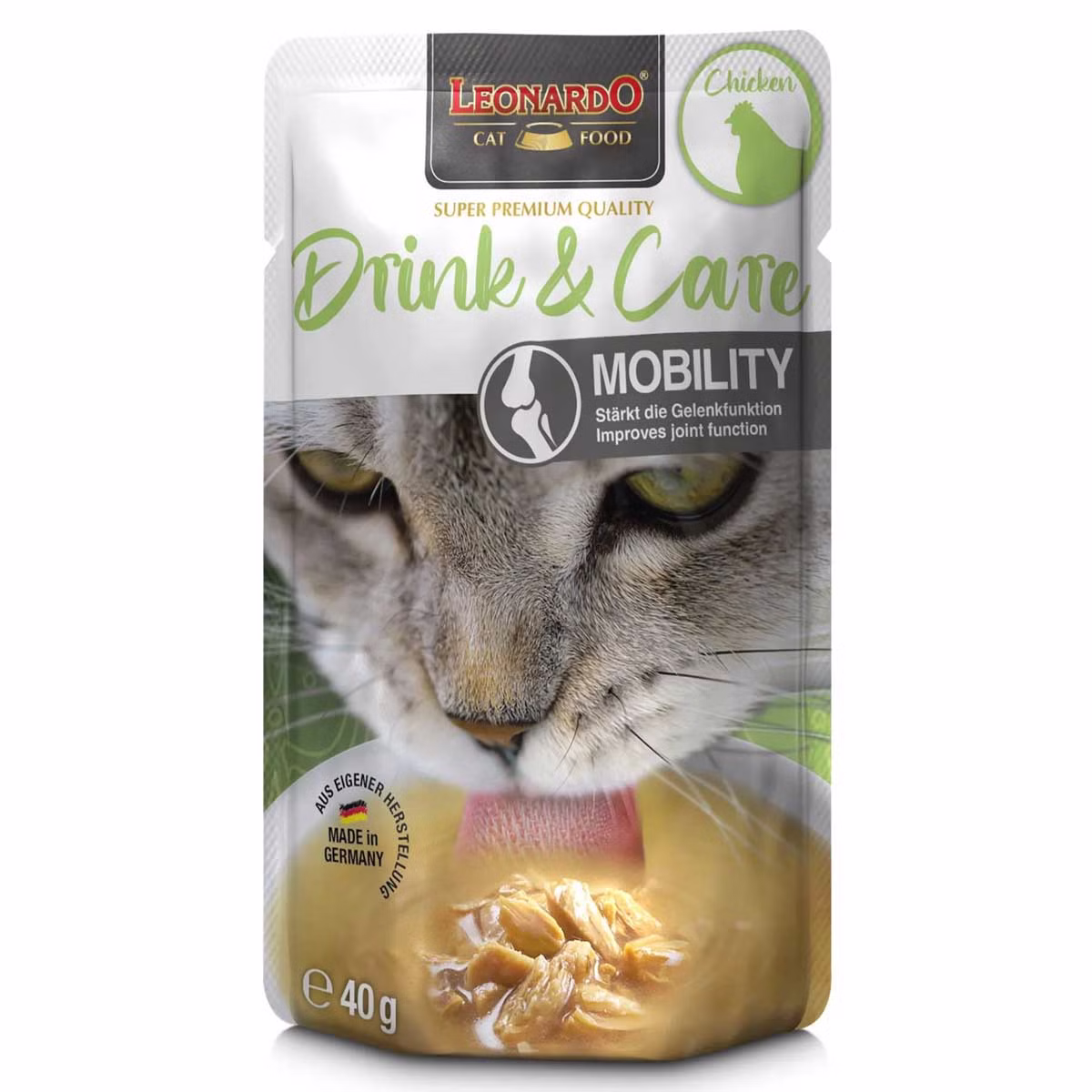 Leonardo Drink and Care Mobility bringt Bewegung ins Trinkverhalten: Mit extra leckerer Fleischbrühe und saftigem Hühnerfleisch lockt Leonardo Drink and Care Mobility selbst den trinkfaulsten Vierbeiner an den Napf und fördert nicht nur die Flüssigkeitsaufnahme, sondern kann auch die Gelenkfunktion unterstützen. Dabei hilft das hochwertige Kollagenhydrolysat.