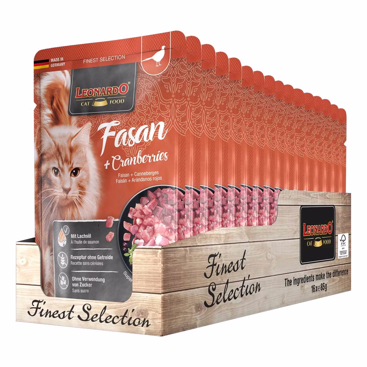 Leonardo Fasan und Cranberries Pouchbeutel für Katzen 85g
