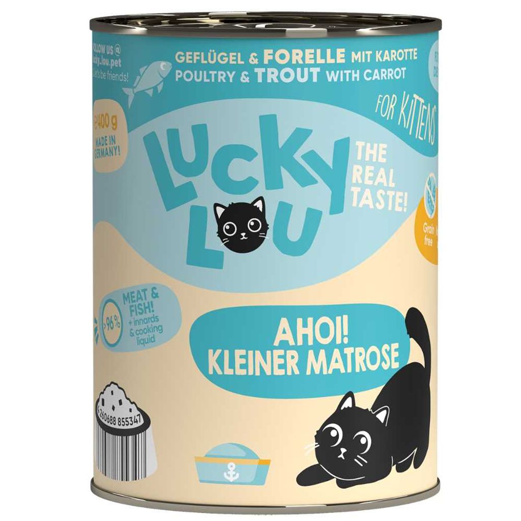 Lucky Lou Kitten Geflügel Forelle mit Karotte für junge Katzen 6x400g
