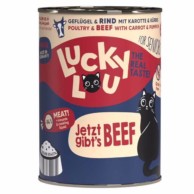 - Lucky Lou Senior Geflügel Rind - Futter für den Bedarf von Seniorkatzen
