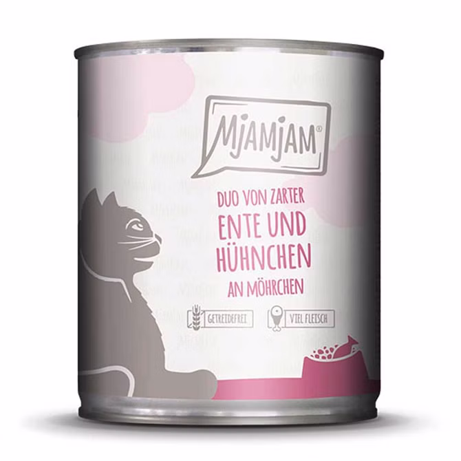 - Mjamjam DUO von zarter Ente und saftiges Hühnchen an Möhrchen - mit allen für Katzen notwendigen Vitaminen und Nährstoffen