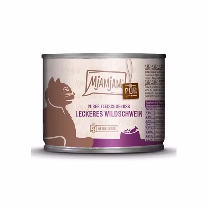 MJAMJAM leckeres Wildschwein pur, das ist purer Geschmack für Ihre Katze. Feines Rindfleisch mit Innereinen und Mineralstoffen sorgen für puren Fleischgenuss für Ihren Liebling. Auf Getreide, Zucker, Konservierungs- oder Geschmacksstoffe sowie synthetische Bindemittel wird vollends verzichtet.