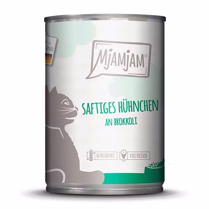 - Mjamjam saftiges Hühnchen an Brokkoli - mit Vitaminen und Mineralstoffen für die Rund-Um-Versorgung von Katzen