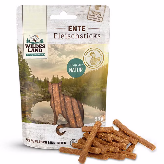 Wildes Land Fleischsticks Ente getreidefreier Katzensnack 9x50g