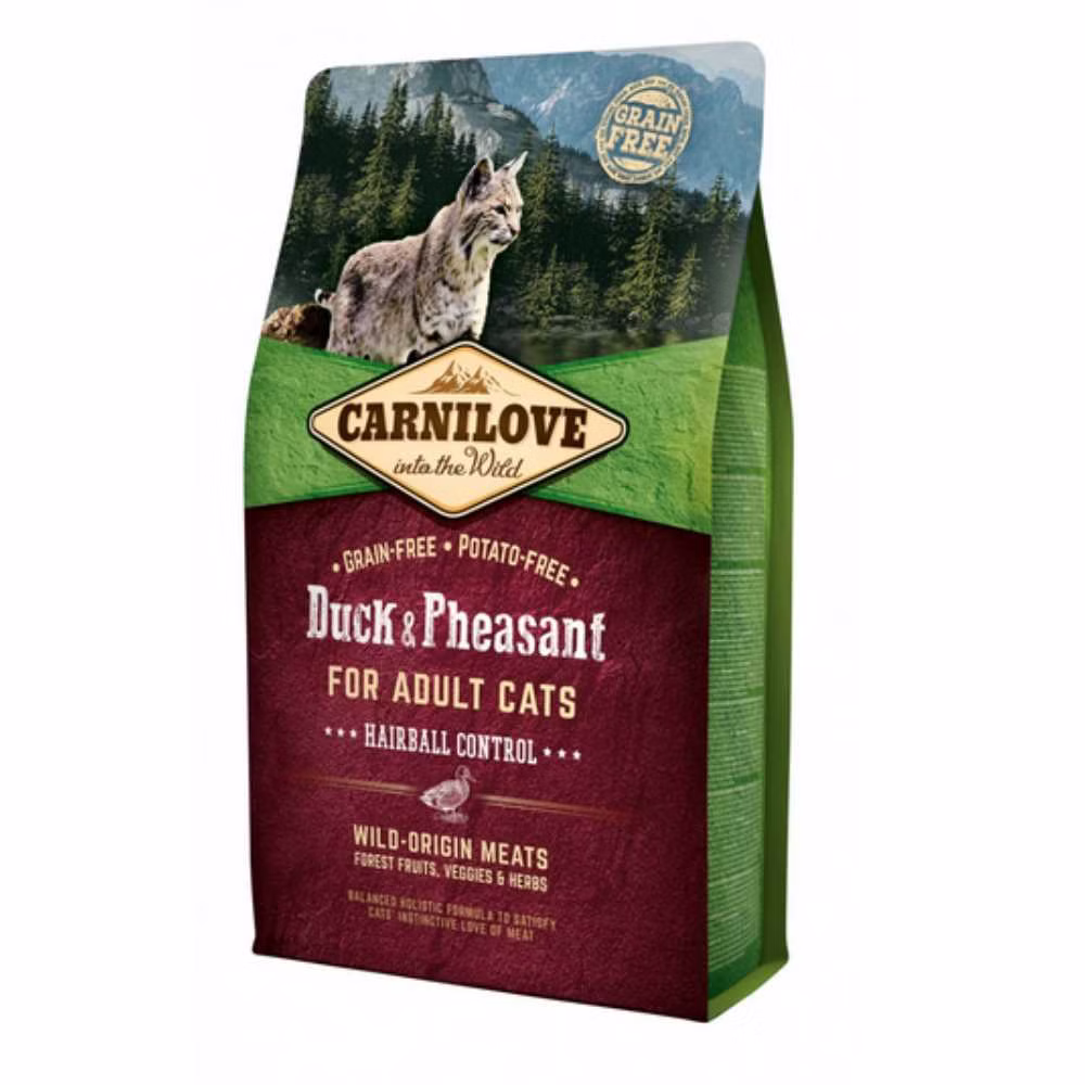 Carnilove Adult Duck Pheasant Hairball Control ist ein Trockenfutter optimiert für Katzen mit langem Haar. Es ist getreidefrei und verzichtet auf den Zusatz von Kartoffeln.