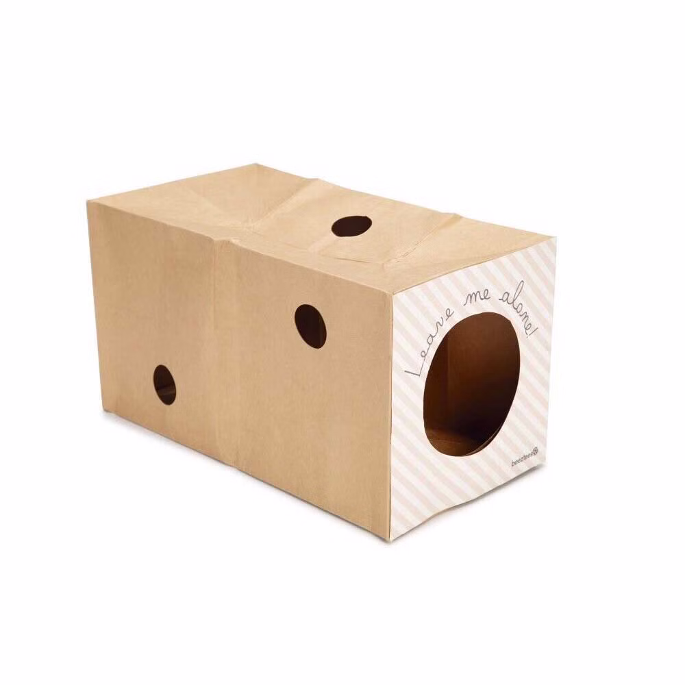 Der Katzentunnel besteht aus Pappe und enthält mehrere Gucklöcher. Dies ermöglicht dem Kätzchen von einem sicheren Platz aus alles im Auge zu behalten.
