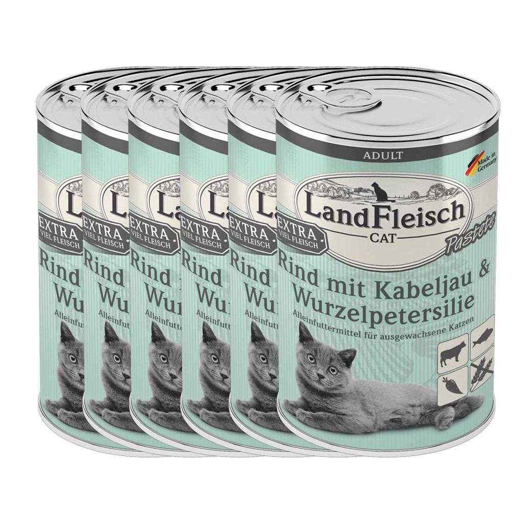LandFleisch Cat Adult Pastete mit Rind Kabeljau Wurzelpetersilie 6x400g