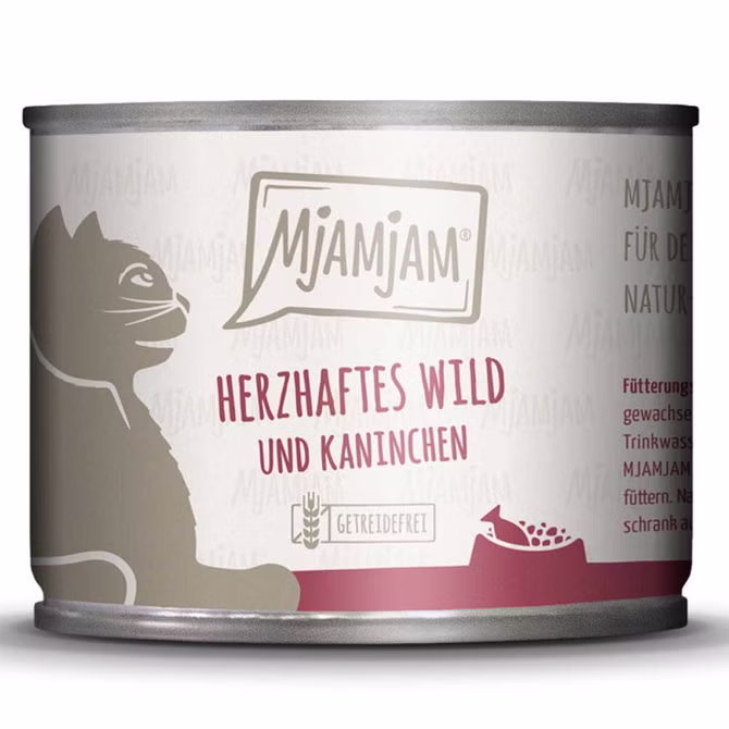 MjAMjAM herzhaftes Wild und Kaninchen an fruchtigen Heidelbeeren bietet deiner Katze neben einem extra hohen Fleischanteil alles was sie braucht. Das frische Fleisch, verfeinert mit knackigen und gesunden Zutaten, gibt ihr ein einzigartiges und exklusives Genusserlebnis, das sie zugleich mit allen wichtigen Vitaminen und Mineralien versorgt.