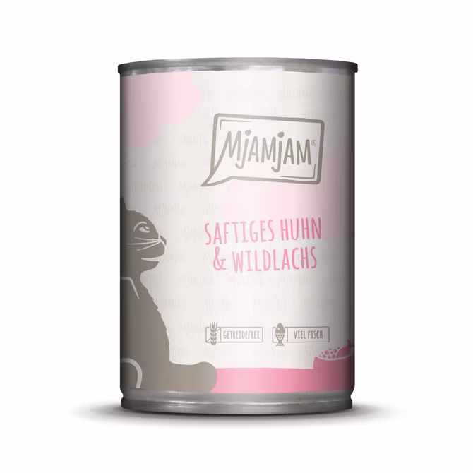 - MjAMjAM saftiges Huhn und Wildlachs - getreidefreies Alleinfuttermittel für Katzen