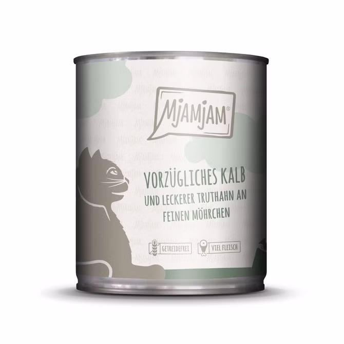 - MjAMjAM vorzügliches Kalb und Truthahn an leckeren Möhrchen - getreidefreies Alleinfuttermittel für Katzen