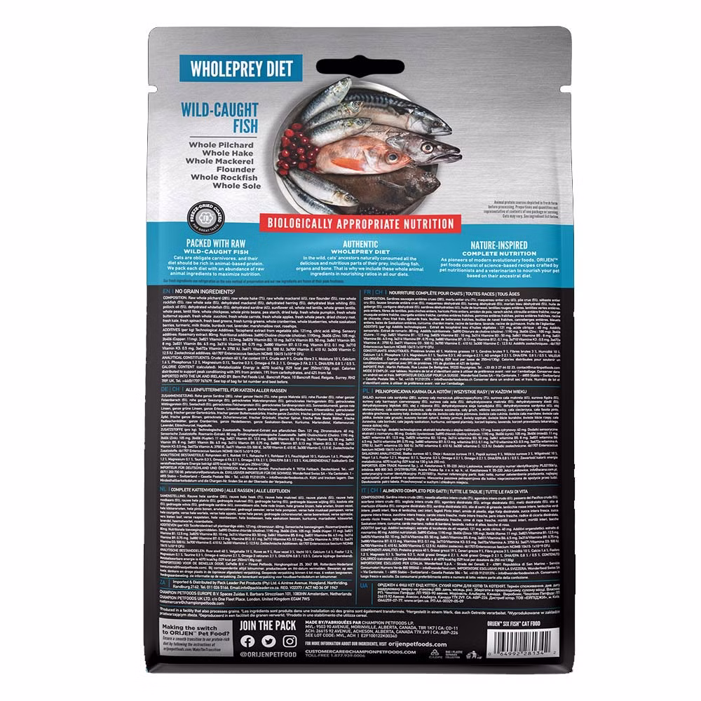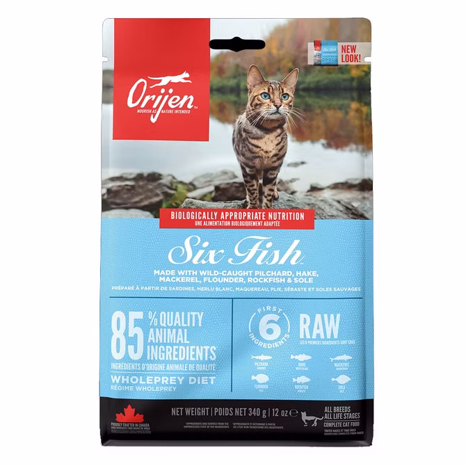 Orijen Six Fish Cat ist das Trockenfutter auf höchster Qualitätsstufe für Katzen in allen Lebensphasen. Katzen sind Jäger und wie bei ihren wilden Verwandten sind ihre Zähne, ihre Kiefer und das Verdauungssystem für eine Ernährung auf der Basis von viel frischem und verschiedenem Fleisch ausgerichtet. „Biologisch angemessenes“ Katzenfutter spiegelt die natürliche Ernährung wider