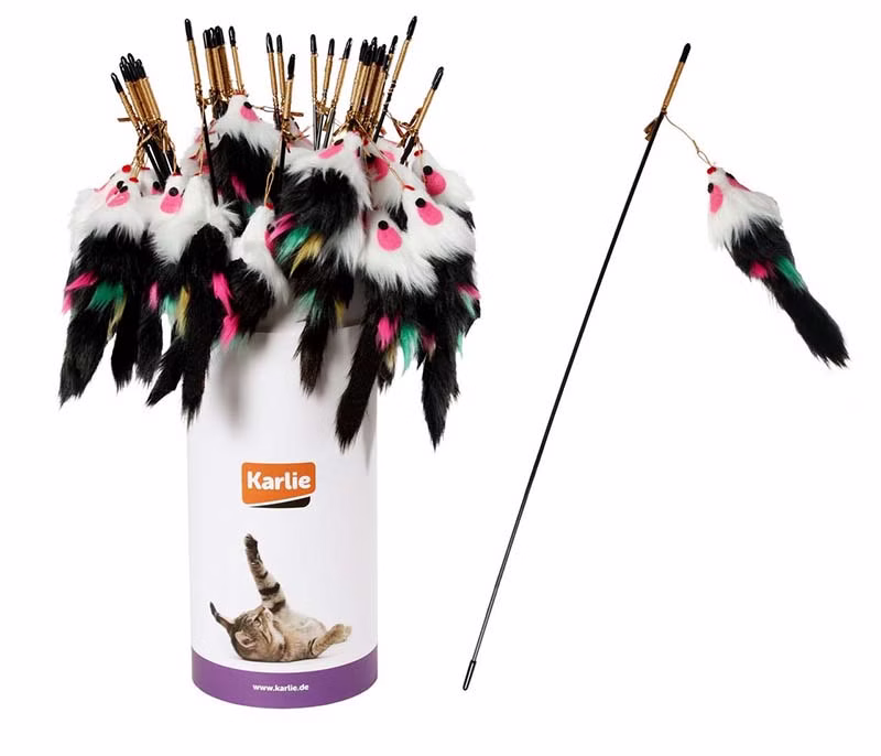 Die Katzenangel mit einer Plüschmaus sorgt für viel Spaß beim gemeinsamen Spiel von Mensch und Katze. Die Maus am Ende der Schnur zeichnet sich durch eine perfekte Flugbahn aus. Sie imitiert eine Beute hervorragend und weckt so den natürlichen Jagdtrieb.