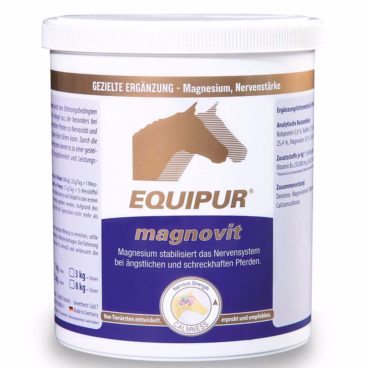 Equipur magnovit zum Ausgleich eines fütterungsbedingten Magnesium- und Vitamin B12-Mangels, der besonders bei ängstlichen und schreckhaften Pferden zu Nervosität und Überreaktionen auf äußere Reize führen kann.