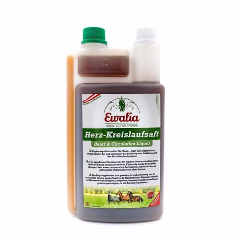 Ewalia Herz-Kreislaufsaft ist ein Ergänzungsfuttermittel für Pferde.