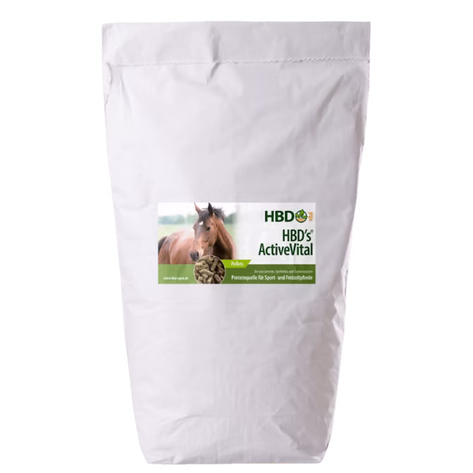 HBD ActiveVital versorgt Dein Pferd mit hochwertigen Proteinen. Das Futter kann täglich zur normalen Raufuttermenge dazugeben werden.