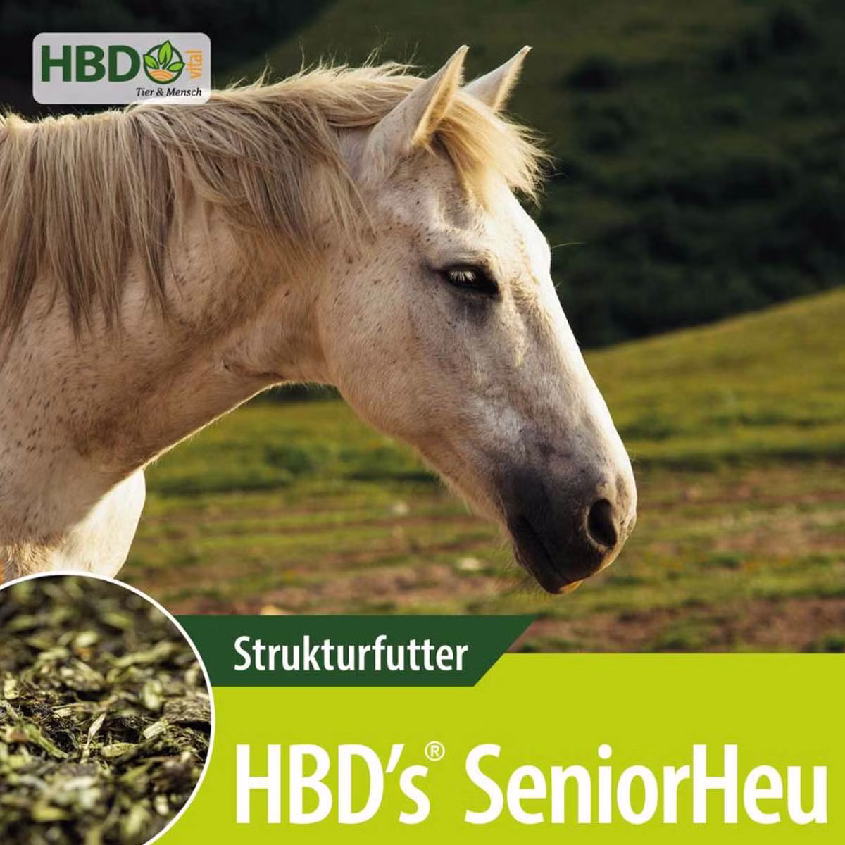 HBDs SeniorHeu kann als Aufwertung der Kraftfutterration dienen, aber auch alleinig als Kraftfutter für leichtfuttrige Pferde verwendet werden. Es eignet sich auch als Heuersatz oder Heuergänzung für Pferde und andere Tiere, die zu wenig Raufutter erhalten. Ein weiterer Vorteil ist, dass es nicht eingeweicht werden muss, was die Fütterung besonders praktisch macht.