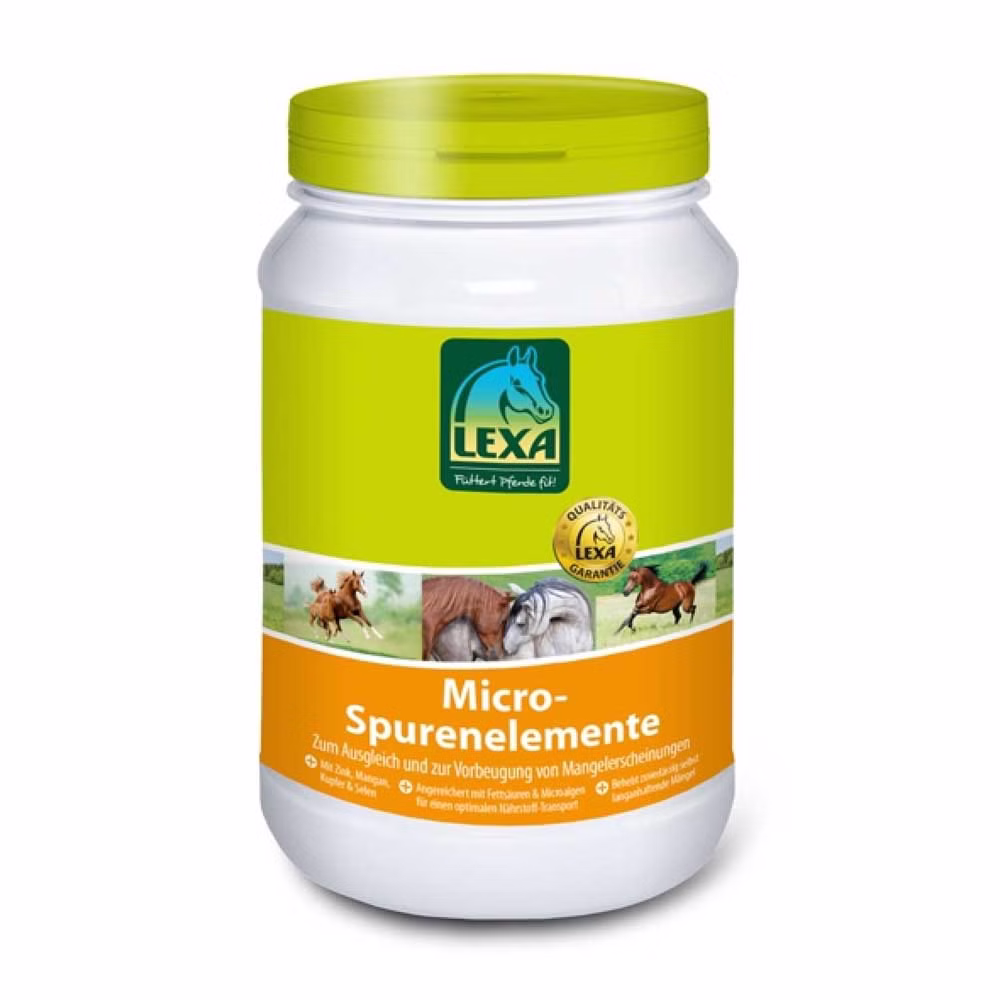 Lexa Micro Spurenelemente ist ein Ergänzungsfuttermittel zum gezielten Ausgleich von Mängeln, die oft durch einseitige Fütterung entstehen. Es dienst zur effizienten Ergänzung der Fütterung mit wichtigen Spurenelementen.