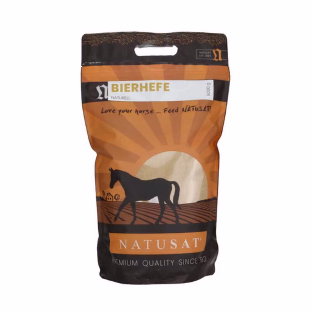 Natusat Bierhefe Naturell mit natürlichen Vitamin-, Enzym-, Aminosäuren und Spurenelemente. Besonders für für Sportpferde geeignet, da die Fütterung keine Karenzzeit zu Folge hat.