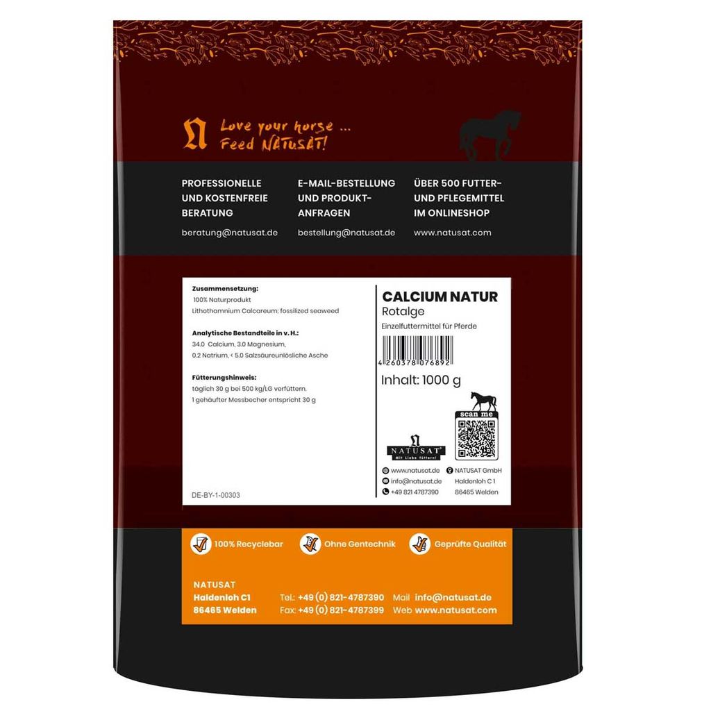 Fütterungsempfehlung für Natusat Rotalgen Calcium natur