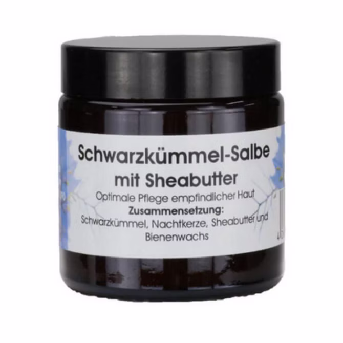 Enthalten sind: Schwarzkümmel, Sheabutter und Bienenwachs