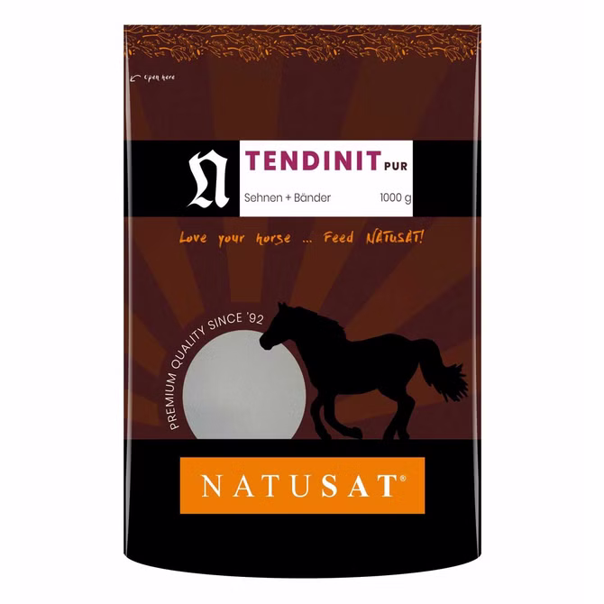 Natusat Tendinit Kollagen Pur eignet sich bei jedem Pferd und jeder Nutzungsrichtung als Ergänzungsfutter. Es besteht aus purem, mikronisiertem Kollagen, welches sich im Körper vor allem in Kollagen Typ I, II und III einbauen lässt, aber in geringerem Maße auch in alle anderen Kollagentypen. Dadurch ist Tendinit Pur eine hervorragende Möglichkeit, Haut, Knochen, Sehnen, Bänder