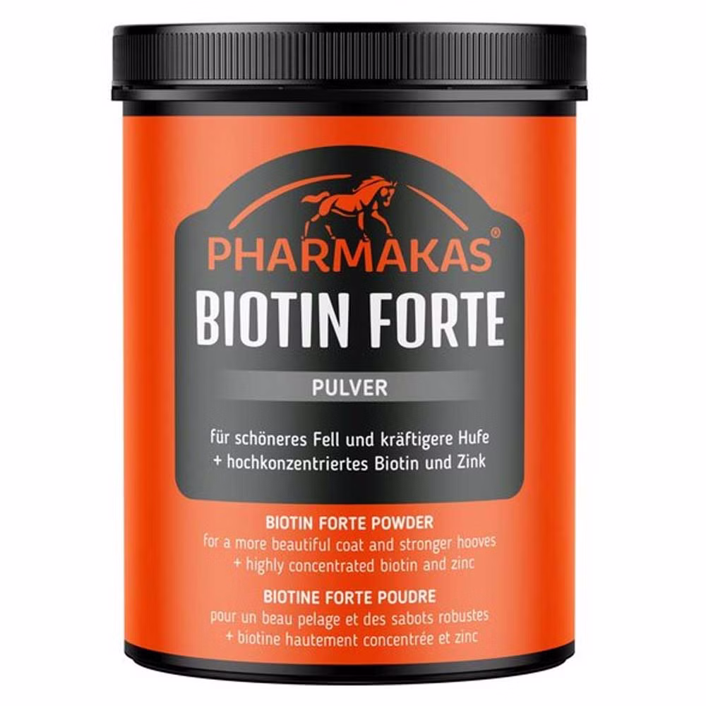 Pharmakas Biotin Biotin forte ist ein Vitamin H enthaltendes Ergänzungsfuttermittel. Es ist ein hochwertiges Produkt, dass schnellverfügbares Biotin zur Verfügung stellt.