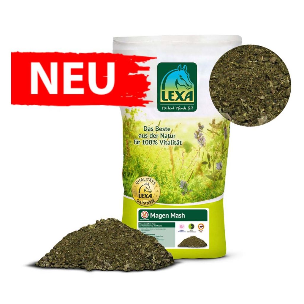 Das getreidefreie Mash eignet sich ideal für alle Pferde mit empfindlichem Magen und Verdauungsapparat. Es enthält prebiotisch wirksame Naturstoffe wie Leinsamenextraktionsschrot und pektinhaltige Faserstoffe, darunter Zichorienpülpe, sowie schleimstoffreiche Zutaten wie Leinöl und Flohsamenschalen. Das Mash ist zucker- und stärkearm sowie frei von Melasse, Getreide und Getreidenebenprodukten. Diese vollkommen getreidefreie und sehr stärkearme Rezeptur ermöglicht Pferden mit Magenproblemen den vollen Mash-Genuss. Seit jeher hat Mash einen wertvollen Stellenwert in der Pferdefütterung, denn es unterstützt die Verdauung und Regeneration positiv. Im Magen Mash werden die sonst üblichen Getreidebestandteile durch verdauungsfördernde Naturstoffe ersetzt. Leinsamenextraktionsschrot und Flohsamenschalen liefern wertvolle Schleimstoffe zur Harmonisierung von Magen und Darm, während zuckerarme Trockenschnitzel prebiotisch