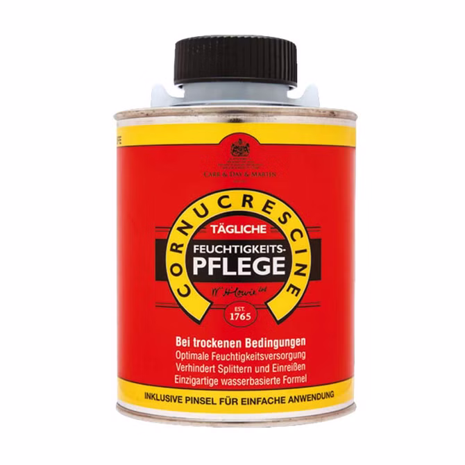 Ein nährendes Dressing basierend auf der originalen Cornucrescine-Formel als Mindestanforderung für die Hufpflege. Geeignet für alle Huftypen und ideal für die tägliche Anwendung. Enthält einen integrierten, hochwertigen Pinsel für eine einfache Anwendung.