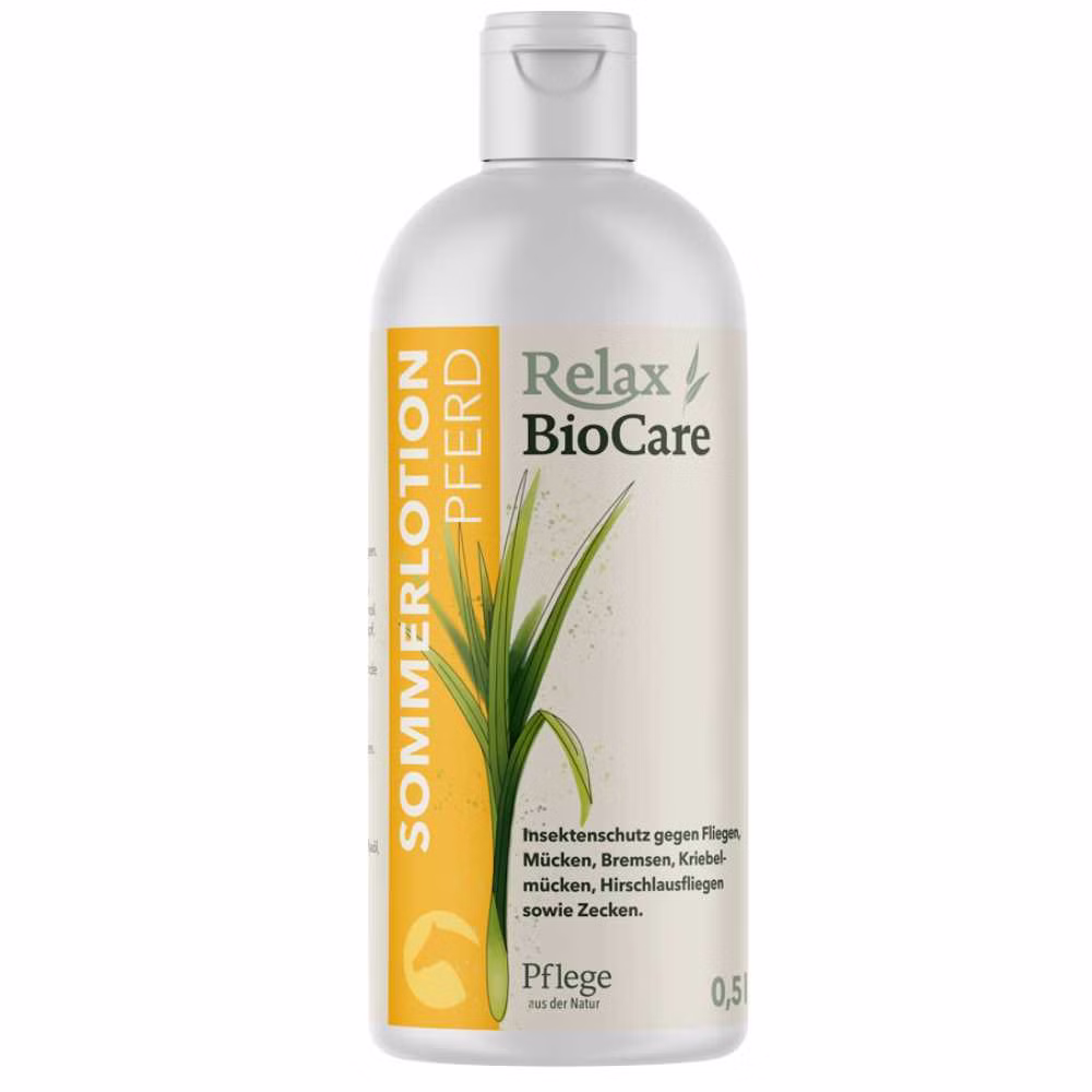 Die Relax Sommerlotion kann helfen, Hautproblemen durch Insektenbefall vorzubeugen. Sie enthält ausgesuchte fein aufeinander abgestimmte pflanzliche Öle und pflegt die Haut durch Sonnenblumenöl sowie Panthenol. Sehr gut zur Anwendung im Bereich von Kopf, Bauchnaht, Schlauch und Euter geeignet. Auch für sensible Pferde, Fohlen und tragende Stuten geeignet.