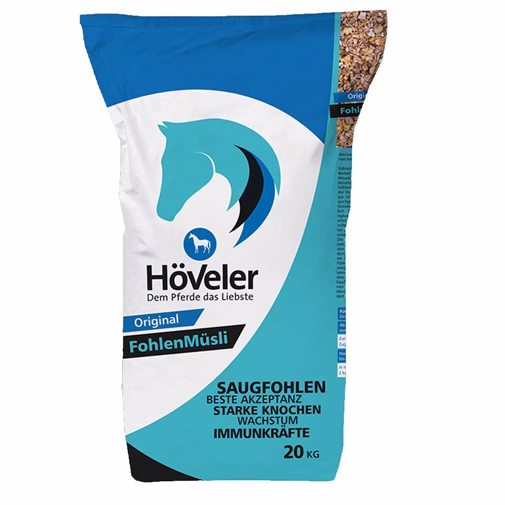Fohlen haben einen besonders hohen Bedarf an Energie und Eiweiß. Beim Höveler Original FohlenMüsli wurde besonderes Augenmerk auf diese erhöhten Anforderungen der Fohlen in der Wachstumsphase gelegt. Die Energie im Original FohlenMüsli stammt aus hydrothermisch aufgeschlossenem Getreide und ist deshalb leicht verdaulich. Sojaextraktionsschrot und dampferhitzte Sojabohnen sichern die Versorgung mit essentiellen Aminosäuren wie Lysin und Methionin