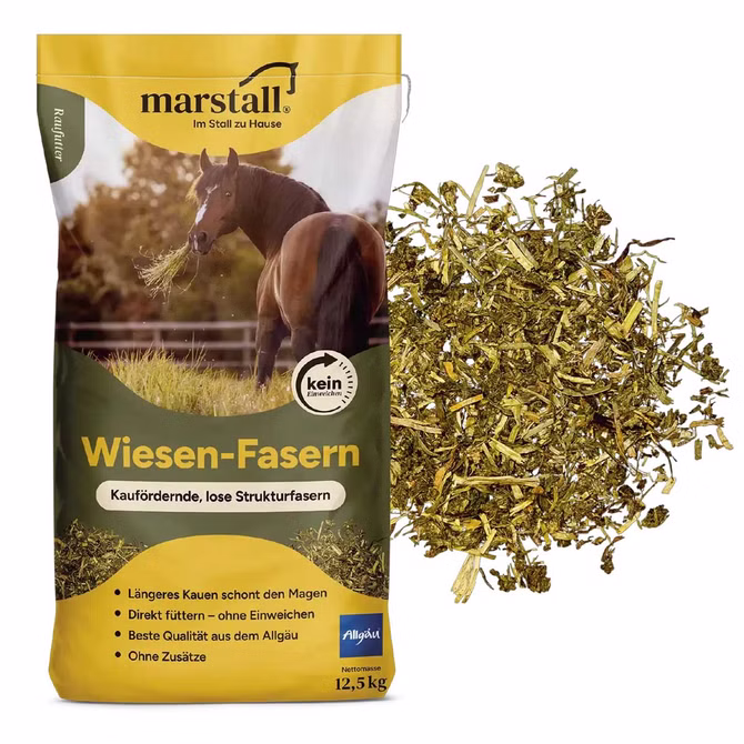 marstall Wiesenfasern ist ein Ergänzungsfuttermittel für Pferde.