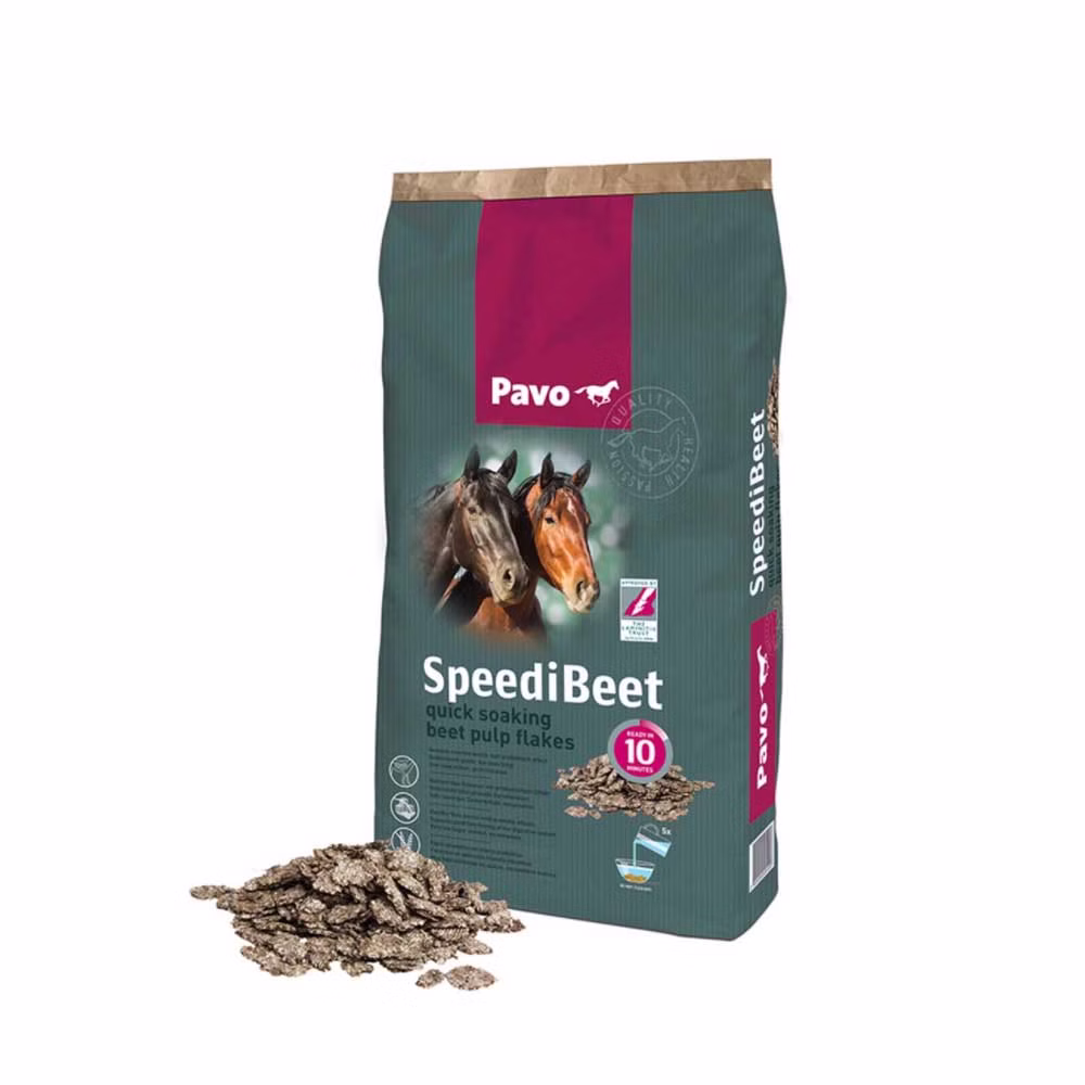Pavo SpeediBeet sind entzuckerte, melasse- und getreidefreie Zuckerrübenschnitzelflocken ohne Zusatzstoffe mit kurzer Einweichzeit. SpeediBeet enthält keine Stärke, nur 5 % Zucker und viele gesunde Ballaststoffe wie Pektin. Die Rübenschnitzel sind eine hervorragende Quelle langsam freiwerdender Energie und leicht verdaulich.