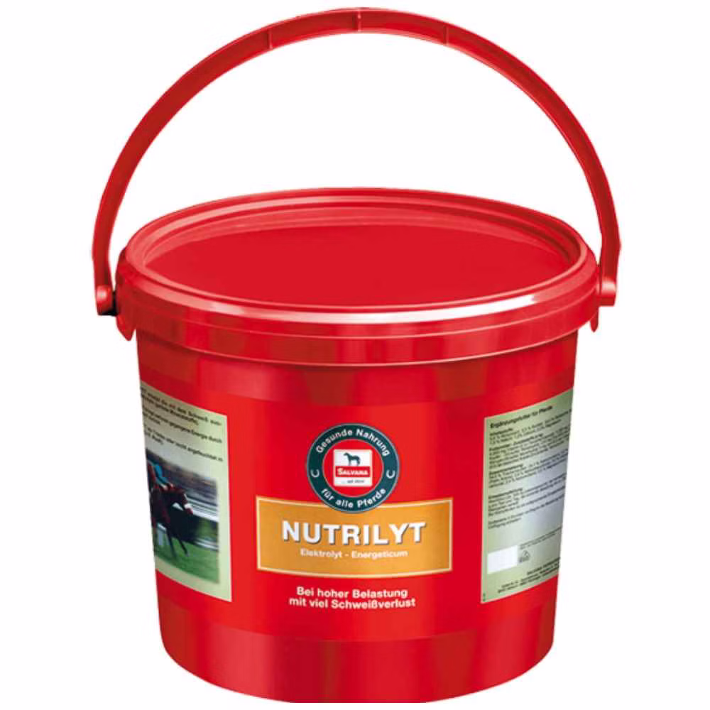 Salvana Nutrilyt ist ein Zusatzfutter für Sportpferde um den erhöhten Bedarf an Elektrolyte zu decken.