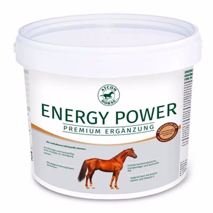 Atcom Energy Power versorgt Sportpferde und leistungsstarke Pferde während dem Training und Wettkampf mit zusätzlicher Energie für die Muskelarbeit. Dies ist sinnvoll, denn der Verbrauch an Energie in der Muskulatur nimmt mit steigender Leistungsanforderung zu. Zur Deckung dieses Mehrbedarfs an hochverfügbarer Energie wurde Atcom Energy Power entwickelt.