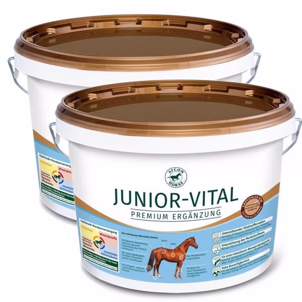 Atcom Junior-Vital ist ein komplettes Mineralfutter in Premium-Qualität sichert in hochverfügbarer Form den Grundbedarf an allen essentiellen Mineralstoffen, Vitaminen, Spurenelementen und Aminosäuren des Jungpferdes (vom 2. Lebensmonat bis zur Vollendung des 3. Lebensjahres) und beugt ernährungsbedingte Mangelerscheinungen zuverlässig vor.