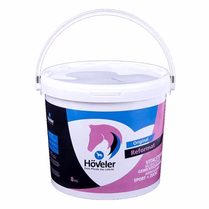 Höveler Original Reformatist ein Aufbaupräparat für Zucht und Sport. Es liefert über eine ausgefeilte Kombination von Vitaminen, Mengen- und Spurenelementen sowie schnell verfügbaren Kohlenhydraten verbrauchte Reserven gezielt und schnell wieder auf. Das optimale Aminosäure-Verhältnis aus Soja und Bierhefe unterstützt den gezielten Muskelaufbau bei Sport- und Zuchtpferden. Es enthält hohe, aufeinander abgestimmten Gehalte an Vitamin A, D3, E und C sowie der ß-Carotin.