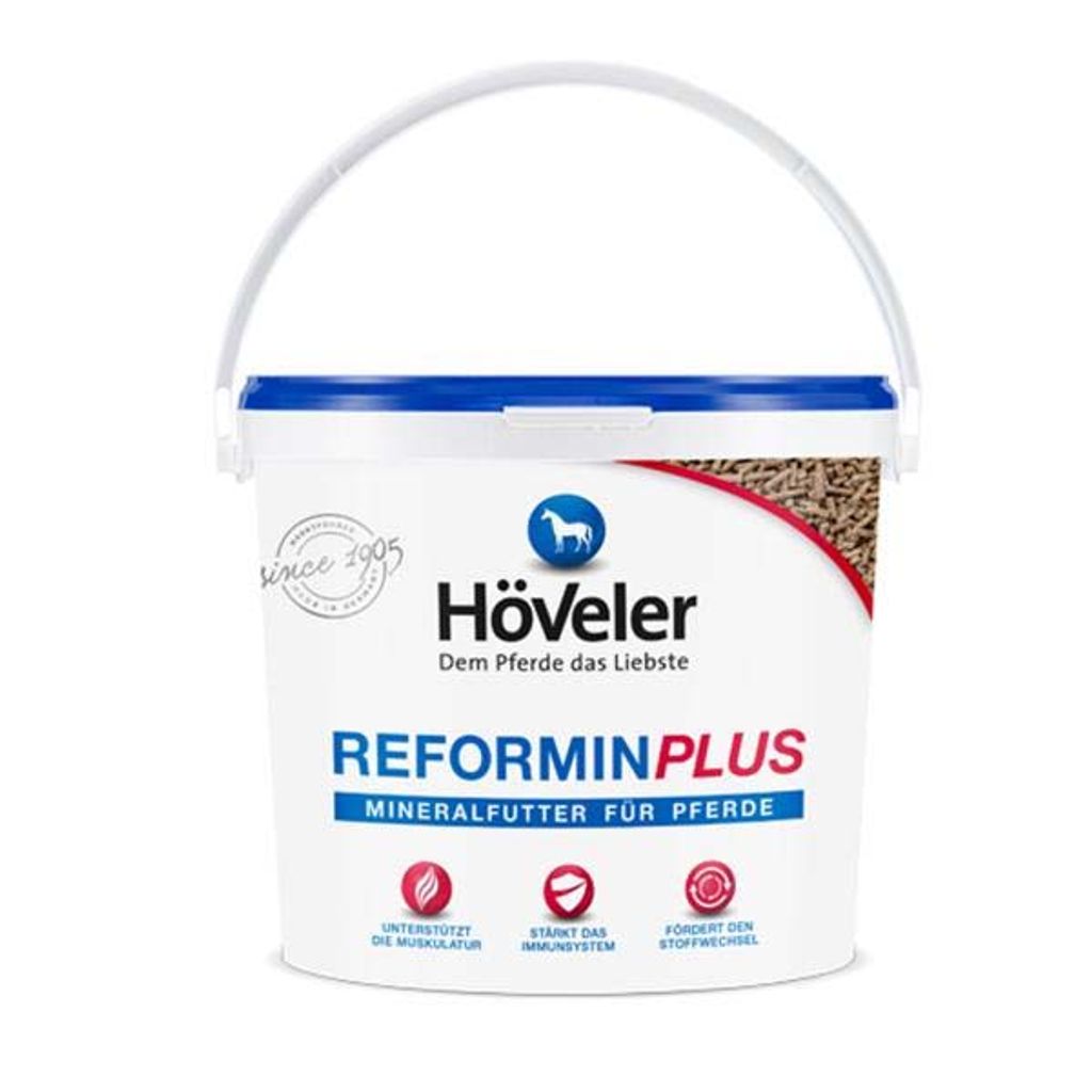 Höveler Reformin Plus wurde nach wissenschaftlichen und praktischen Erkenntnissen konzipiert, um Versorgungslücken im täglichen Futter zu schließen. Als Vitamin- und Mineralstoffergänzer ermöglicht Höveler Reformin Plus eine ausgewogene Versorgung Ihres Pferdes. Denn nicht selten haben die üblichen Rationen erhebliche Defizite bei der Mineralstoff- und Vitaminversorgung. Häufig weist das eingesetzte Grundfutter auch standortbedingte Mängel an zahlreichen Spurenelementen (z.B. Selen, Kupfer, Jod etc.) auf.