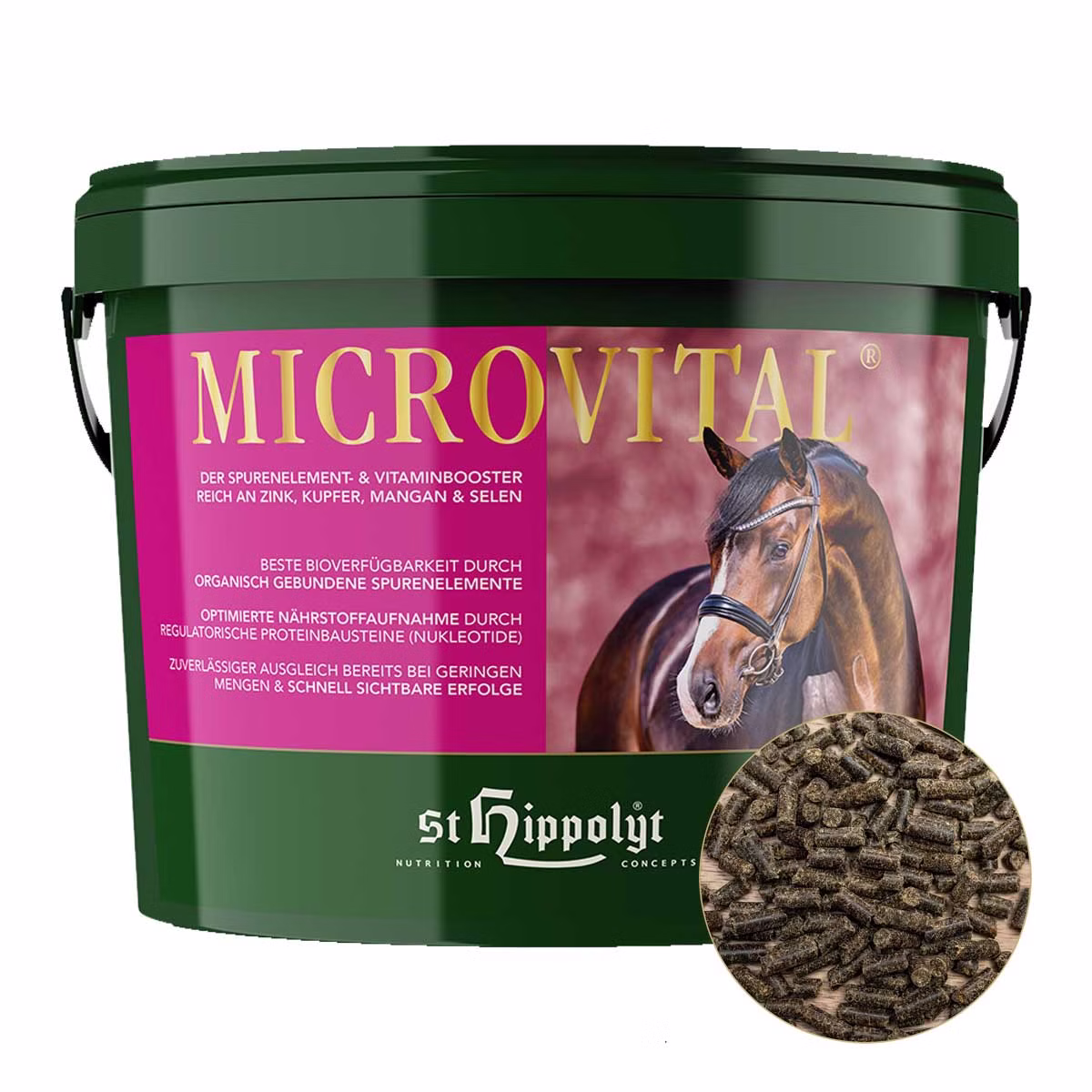 St Hippolyt MicroVital ist ein Ergänzungsfuttermittel für Pferde. Es fördert einen raschen Ausgleich von Versorgungsengpässen mit Hilfe hochbioverfügbarer Spurenelemente.