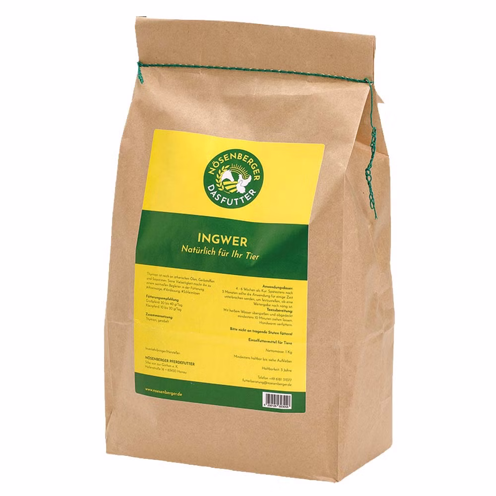 Nösenberger Ingwer punktet durch seinen hohen Gehalt an Gingerolen und ätherischen Ölen. Gezielt eingesetzt ist er ein wertvoller Begleiter in der Fütterung. Ingwer wird gerne auch mit Teufelskralle kombiniert.