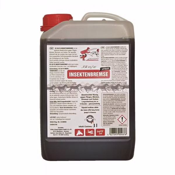 Schopf IR 35/10 Insektenbremse enthält spezielle Wirkstoffe für gezielten Insektenschutz. Mit Haut- und Fellpflegesubstanzen.
